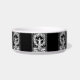 This is a heavy, durable bowl decorated with Tibbies of many colors, the perfect size for hungry/thirsty Tibs. The design is interesting and printing clear.