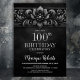 Vintage Flower Black 100th Birthday Party Invitation
