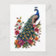 Vintage flowers and peacock postcard