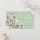 This stylish wedding table place card business card has a soft blue and cream damask background with a branch that has lots of coral coloured flowers at the bottom left with a bird flying near the branch. On the right, you can write in at home the name of the guest and the table number that they are sitting at.