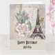 Vintage Flowers, Eiffel Tower and Burlap Birthday Card