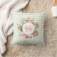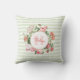 Vintage Flowers Pastel Green Stripes Monogram Cushion
