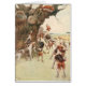A vintage illustration by Cecil Aldin featuring a scene from a hunt. Barking and baying hounds dance and jump around the base of a gnarly tree as a red fox lies safely on a thick tree branch watching them from above. The British artist and illustrator, Cecil Charles Windsor Aldin RBA (1870-1935), was best known for his paintings and sketches of animals, sports and rural life. This card is blank inside for your own message.