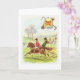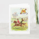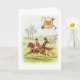 A vintage illustration of a young man and young lady riding horses in a fox hunt. Card is blank inside for your handwritten message.