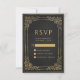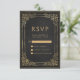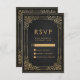 This elegant wedding RSVP card features an ornate vintage gold frame on a distressed off-black background in imitation of an antique book cover. The frame design is repeated on the back of the card.