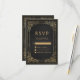 This elegant wedding RSVP card features an ornate vintage gold frame on a distressed off-black background in imitation of an antique book cover. The frame design is repeated on the back of the card.