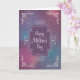 A colourful, blurry background with a white vintage frame in the centre and flower swirl corners on this unique Mother’s Day card. Give your mother this pretty card for her special day! Design © 2015 Julia Bryant.