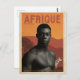 Beautifully illustrated antique colonial style travel poster featuring a african tribal man and a zebra against an african sunset. Natural colours, including orange and retro brown