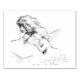 Vintage French advertisement with a hand sketched drawing of an elegant woman with a little angel or cupid whispering in her ear. As the French handwritten script below explains, he is telling her a secret - if she wants to be the most alluring, she should purchase diamonds from Bluze, a popular manufacturer at the time.