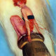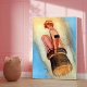 Retro vintage Champagne poster from the 1930s. An illustration of a girl flying on a Champagne Cork!
