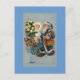 Designed by Susan Epps Oliver. Vintage image of the young Jesus riding on a donkey and holding a brightly lit small Christmas tree. Santa Claus walks by his side leading the donkey and carrying a basket of shiny red apples and a big sack of toys.