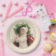 They'll adore this holiday themed paper plate adorned with a vintage French Christmas illustration featuring a little girl in a white coat and hat holding up a Christmas tree with a bright red ribbon. Dark green border.