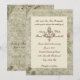 Oh how pretty! This wedding invitation features a design of antique or vintage paper featuring French text, roses, and fleur de lis. A very elegant wedding invitation.