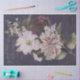 Elegant dark purple and light pink vintage roses and peonies. Vintage French advertising and script ephemera.