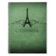 Grungy yet elegant Vintage French Flourish Notebook in forest green featuring an Eiffel Tower design embellished with chic swirls and dots and a faux paper textured background. This unique Parisian themed notebook gives you a place to jot down notes with funky French flair! Easy to customise, simply add the personalised text of your choosing in the text field provided. Click on the "Customise It" button to find additional personalisation options.