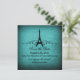 Grungy yet elegant Vintage French Flourish Save the Date Announcement in turquoise featuring an Eiffel Tower design embellished with chic swirls and dots and a faux paper textured background. This unique Parisian themed save the date invitation would be perfect if you are planning a destination or simply a french inspired wedding. Easy to customise, simply add the details of your wedding in the fields provided. Click on the "Customise It" button to find additional personalisation options.