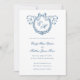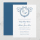 Vintage French Monogram Wreath Blue Wedding Invitation