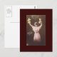 This is a fun old Bonne Annee postcard! This one features a woman in a pink dress holding up bags of cash, while standing under a branch of Mistletoe. Looks like she is one lucky lady!!