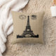 Vintage French postcard with the Eiffel Tower on a burlap style background.