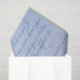 A large handwritten letter in French in blue.