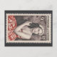 Beautiful Francais de l’oceania Tahiti engraving from early 1900 postage stamp featuring a beautiful South Pacific Islander Girl wearing a red dress surrounded by tropical leaves from our Island girl collection