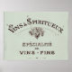 Vintage French Wine advertisement typography on antique blue gray pattern background