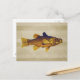An antique vtinage illustration of a fish in golden brown colours. Background is a striped vintage pattern in a light brown colour. Great for those who love fishing.