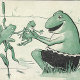 The image on this card was adapted from a vintage postcard. It shows a proud mother and father frogs with twin babies.