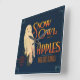 Add a little farmhouse charm to any wall with this vintage style Americana advertising art. An old fruit crate label has been painstakingly reproduced to fit the format of this square wall clock. The strong design elements and the vivid colours will be a standout addition to your room decor.