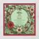 This wedding menu captures the vintage charm of the Art Nouveau style, featuring an intricate garden design in bright, contrasting colours.