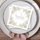 These beautiful wedding or bridal shower napkins feature an antique style, whimsical baroque illustrated frame decorated with colourful flowers and leaves in subtle shades of peach, pink, purple, green, and neutrals on a white background. A whimsical look that also recalls the Art Nouveau style or regency elegance. Your names and wedding date are featured in soft grey in the centre, along with a subtle and swirly script version of your monogram.
