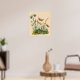 Vintage illustration botanical nature design featuring a garden scene with flowers, flying butterflies, crawling caterpillars and a chrysalis. A butterfly life cycle.