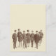Vintage looking design featuring an antique illustration, from old fashion catalogue, of a fashionable group of seven/7 men. Easily customise with your favourite background colours.
