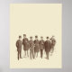 Vintage looking design featuring an antique illustration, from old fashion catalog, of a fashionable group of seven/7 men. Easily customize with your favorite background colors.