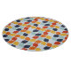 This mid-century modern pattern features orange, teal and teal geometric shapes.