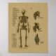 Vintage German anatomy illustration. Posterior view of the skeleton. Shoulder, hip and elbow joints. Descriptions in German.