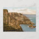Postcard with a vintage photo lithograph of Pleaskin Head, Giant's Causeway, Ireland from 1895 pictures dramatic seaside cliffs. Digitally cleaned, enhanced and artistically rendered to resemble pen and ink with watercolors. The Giant's Causeway is located in County Antrim on the northeast coast of Northern Ireland, about three miles northeast of the town of Bushmills.