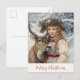 Our fantasy vintage image of a lovely little girl with her reindeer at Christmas is adorable! We hope you like it so much, too. With her wreath crown and snow-laden background, she and the reindeer have the sweetest expressions of holiday sentiment. "Merry Christmas" on the front of the postcard can be edited to a similar holiday message of your choice if you want to change it.