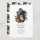 Floral owls gothic wedding invitation in black, russet gold, and amber customisable to your event specifics.