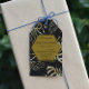 Favour tag featuring a background with a vintage gold bee pattern paired with a polygon that holds all information for your apiary. Choose between different items from this collection to complete your branding.