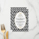The design features a vintage black and white damask background with a decorative gold border frame with an ornate floral flourish and is finished with elegant wording in black and gold.