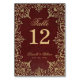 Vintage Gold Burgundy Red Elegant Wedding Table Number