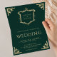 Vintage Gold Crest QR Code Emerald Green Wedding Invitation