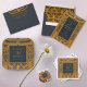 This elegant vintage blue and gold design for an Egypt theme birthday party has a gold frame with ancient Egyptian decorations: winged scarab above the text and lotus flowers on the sides and down. The text is golden, like the frame, the background (and the back) is navy blue.