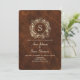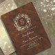 This elegant vintage wedding invitation features a dark wood grain background with ornate gold floral accents and intertwined wedding rings at the centre. The rounded corners and refined serif typography add a touch of classic charm, making it perfect for rustic, country, fall, or vintage-inspired weddings. Fully customisable with your names, wedding date, time, and location. A stunning blend of rustic warmth and golden elegance for your special day.