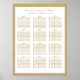 An Elegant Vintage Gold wedding reception seating chart with the bride and groom's name and the wedding date at the top. Customise and personalise to add your own details . All text in gold on white inside a golden border. On the right, you can use the template to easily fill in the names of your guests by table. When done with that, make sure to click "Customise it!" to change any font, colours and styles, remove tables, add tables, etc. to truly personalise it for your special Wedding day!