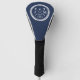 Upgrade his golf bag with a personalised driver cover! Vintage style monogrammed design features a pair of crossed golf clubs with his initials and birth year in white on a classic navy blue background.