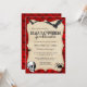 This creepy vintage Halloween party invitation features flying bats, black widow spiders and skull on an antique paper frame and blood red background filled with flying bats. Back also features red background filled with flying bats. Perfect for gothic, vintage, steampunk, Day of the Dead, or costume parties. Easy to personalise with custom options.
