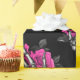 Whimsical vintage gothic Halloween wrapping paper featuring hot-pink roses adorning skeleton hands.
