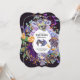 Attractive purple orange themed Quinceanera invitations for daughters celebrating their 15th birthday. This vintage gothic theme features watercolor purple orange flowers, skulls and vintage style calligraphy and typography. For matching party supplies and custom edits contact Designer LeahG.